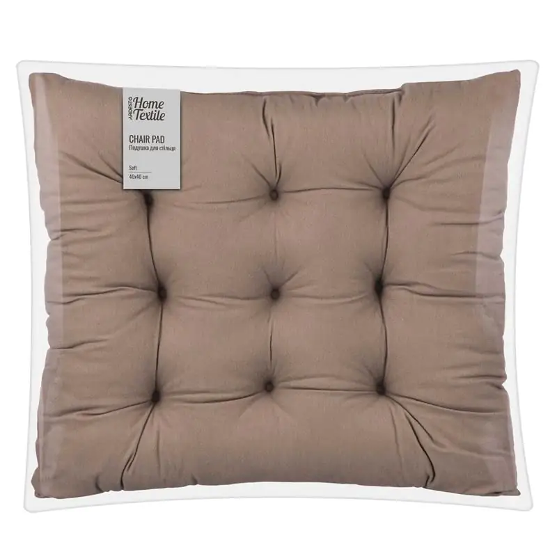 <p>Тип: подушка для стільця.<br /> Розмір: 40х40 см.<br /> Колір: бежевий.<br /> Склад: чохол 100% поліестер, наповнювач 100% поліестер.<br /> Гарантія: 1 місяць у разі виробничого дефекту.<br /> Країна виробництва: Китай.<br /> Рекомендації по догляду:<br /> - прати в пральній машині при 30 °C на делікатному режимі;<br /> - не віджимати і не сушити в сушильній машині;<br /> - не відбілювати;<br /> - хімчистка заборонена;<br /> - не прасувати.</p>