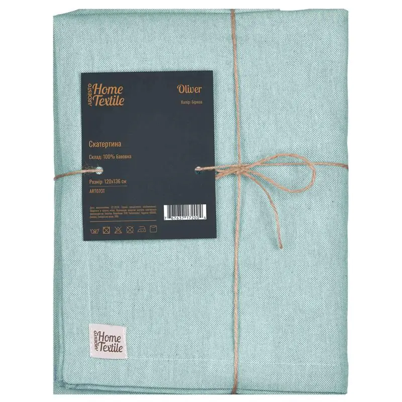 Скатертина Ardesto Oliver, 120х136см, 100% бавовна, бірюза