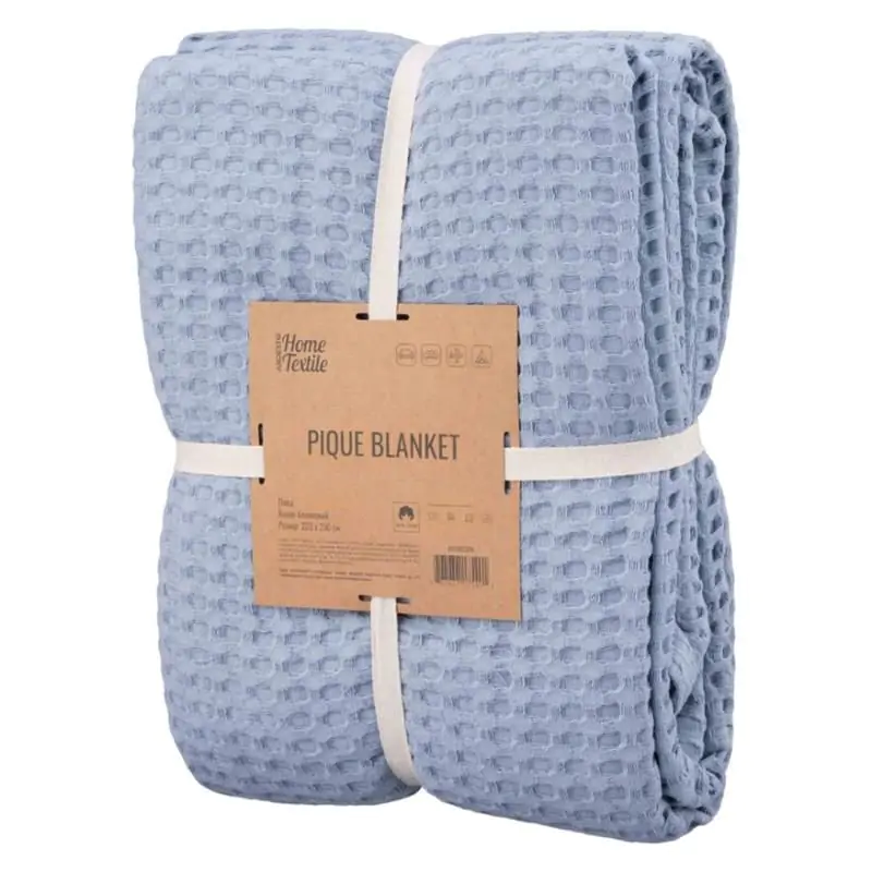 Плед Ardesto Pique 220x230см, 100% бавовна, блакитний