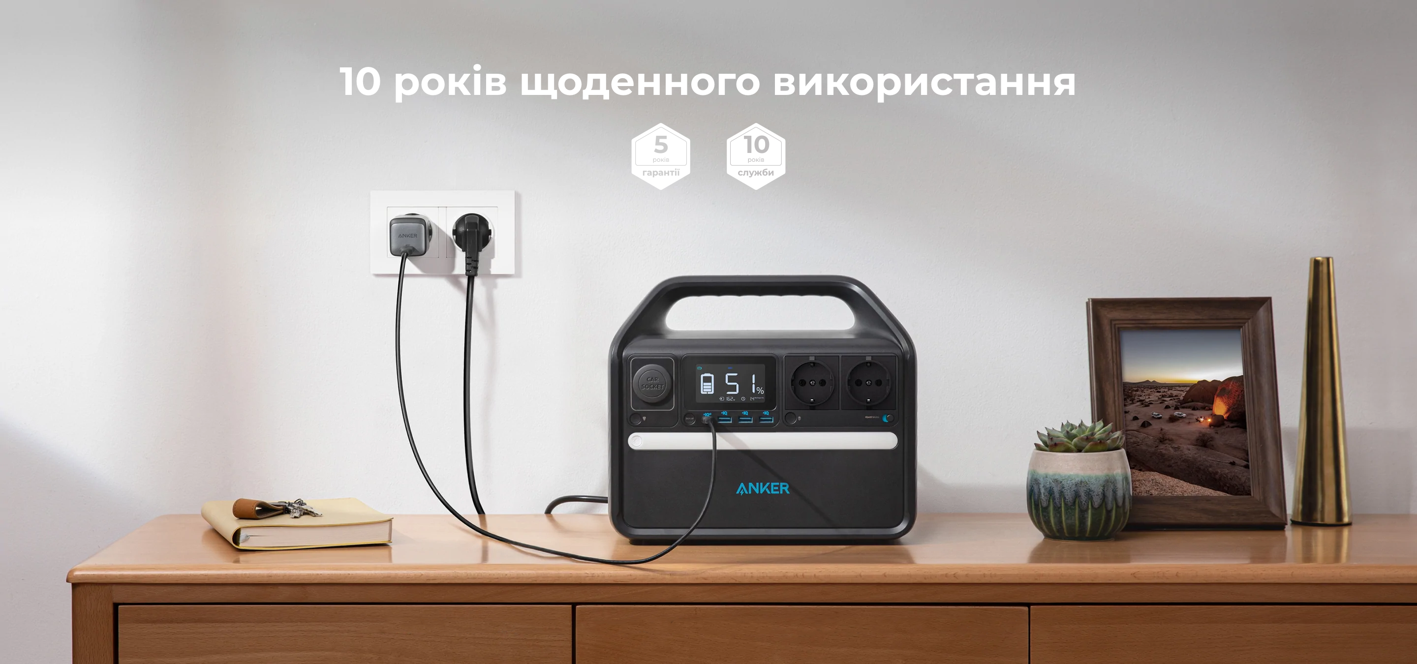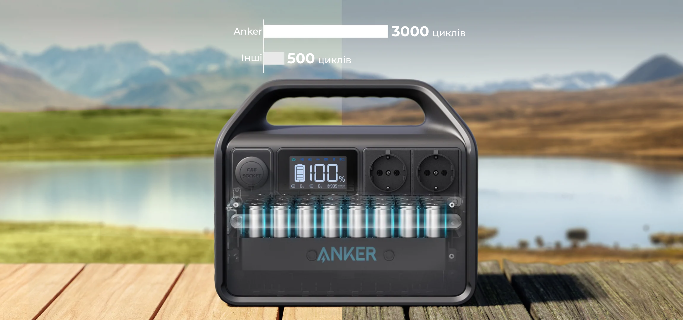Батарея в Anker 535 починає деградувати через 3000 циклів зарядки/розрядки, що у 6 разів довше, ніж в середньому у галузі.