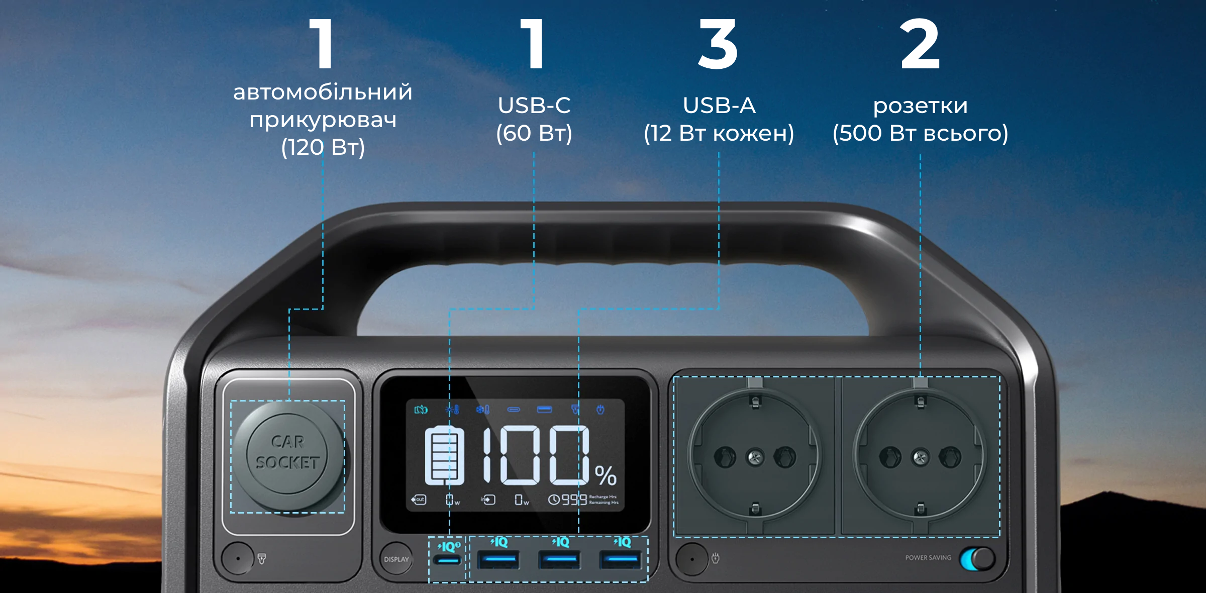 Зверніть увагу, що Anker 535 не підходить для використання з потужними приладами. Вона підтримує лише пристрої чи прилади з номінальною потужністю до 500 Вт.
