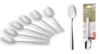 Серія: Como Тип: чайна ложка Кількість предметів: 6 шт. Матеріал: нержавіюча сталь Полірування: дзеркальне Вага:182 г Товщина: 1,8 мм Розмір: 137 мм Упаковка: блістер Використання в посудомийній машині: так Країна виробництва: Китай Гарантія: 1 місяць у разі виробничого дефекту