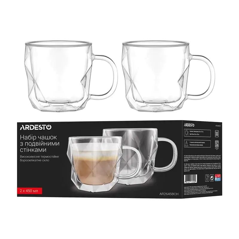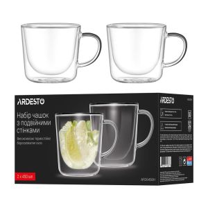Набір чашок з ручками і подвійними стінками Ardesto, 450мл, 2шт, боросилікатне скло, прозорий