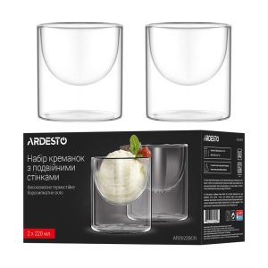Набір креманок з подвійними стінками Ardesto, 220мл, 2шт, боросилікатне скло, прозорий