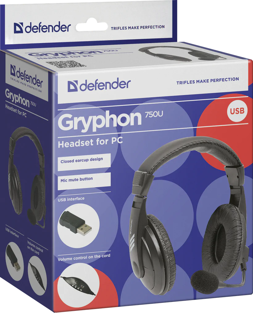 Комп'ютерна гарнітура Defender Gryphon 750 планшетних комп'ютерів, ноутбуків нового покоління. На кабелі гарнітури зручно розташований регулятор гучності. Завдяки гарній звукоізоляції і комфортним амбушюрам слухайте улюблену музику й аудіокниги в дорозі - ніщо не буде вам заважати!