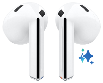 Зображення змодельовано з ілюстраційною метою. Доступні кольори Galaxy Buds3 можуть різнитися залежно від країни чи постачальника. Galaxy Buds3 підтримує функції Galaxy AI, зокрема Перекладач і Live Translate, при під'єднанні до сумісних пристроїв Samsung Galaxy. Доступність функцій Galaxy AI може різнитися залежно від моделі пристрою. Детальна інформація на сайті samsung.com/ua.