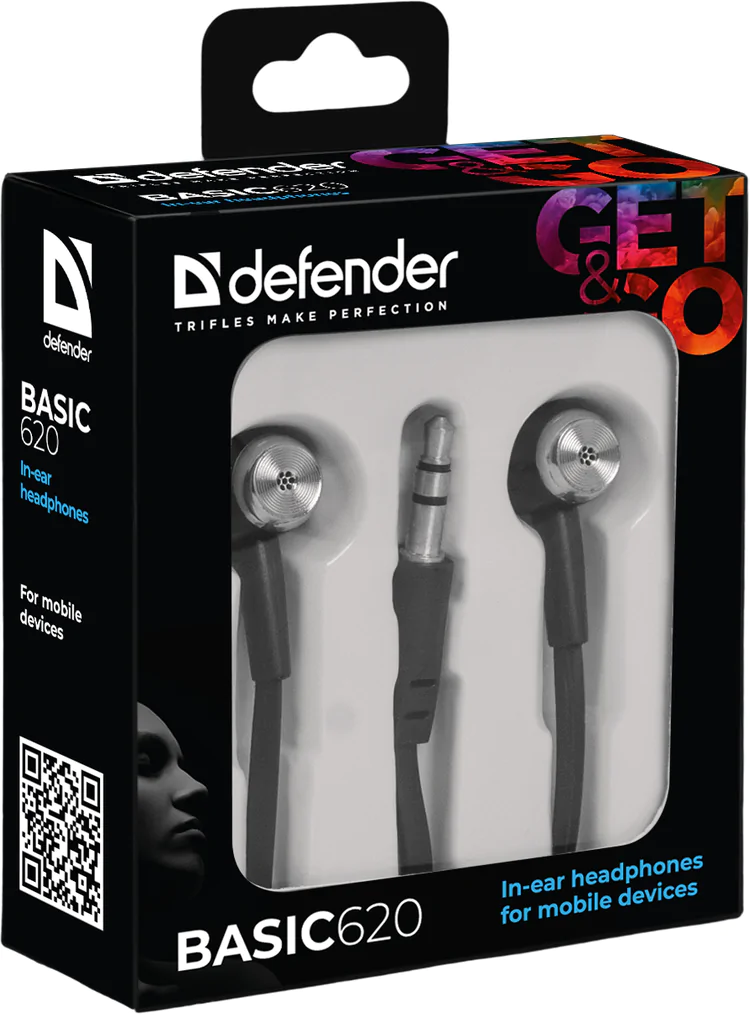 Defender Basic 620 - навушники-вкладиші для мобільних пристроїв. Basic 620 практичні та зручні, мають плоский кабель і яскравий дизайн.