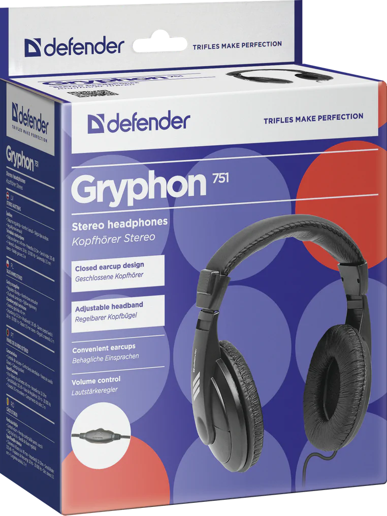 Навушники Defender Gryphon HN-751 (63751) - відмінні стереонавушники з регулятором гучності, похідна модель від гарнітури Defender HN-750. Користуватися навушниками з регулятором гучності та шнуром довжиною 2 метри дуже зручно, причому не тільки для прослуховування музики, а й для перегляду фільмів по телевізору, нікому при цьому не заважаючи.