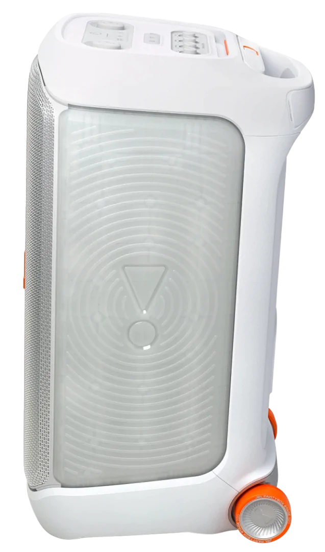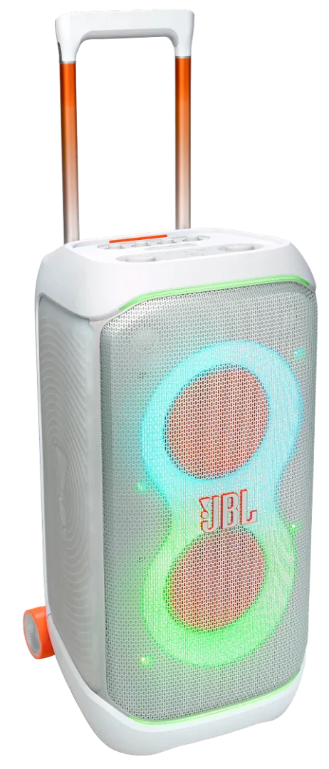 Потужне звучання JBL Pro Насолоджуйтесь потужним звучанням JBL Pro від двох 6,5-дюймових низькочастотних динаміків, що забезпечують чисті, точні та глибокі баси навіть на максимальній гучності, і парою високочастотних купольних динаміків розміром 25 мм, які створюють кришталево чисті високі частоти. Ви можете заповнити музикою простір розміром з тенісний корт, як у приміщенні, так і на вулиці.