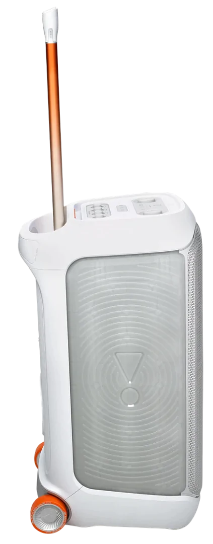 Телескопічна ручка та широкі міцні колеса Прикотіть свою колонку на вечірку із широкими міцними колесами та зручною ручкою, яка висувається та опускається, коли потрібно.