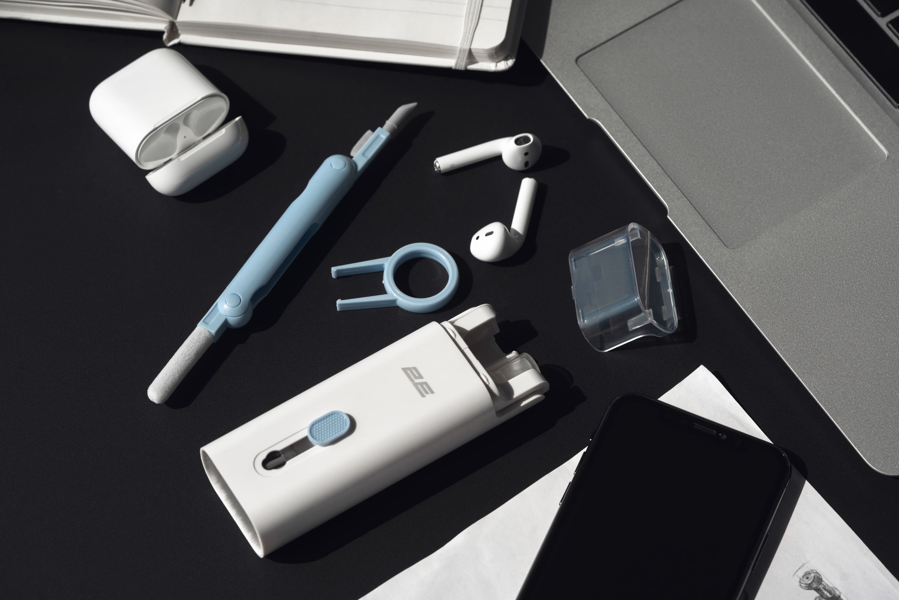Спецыальний олівець 3в1 із силіконовим наконечником ідеально підходить для бездротових навушників, а мініщітка та флокована губка допоможуть легко видалити забруднення зі щілин, сіток і корпусу навушників.