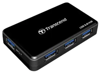 Концентратор SuperSpeed USB 3.0 Hub компанії Transcend ідеально підходить для використання з сучасними ультрабуками і тонкими і легкими ноутбуками. HUB3 миттєво перетворює один USB 3.0 порт у чотири, надаючи можливість під'єднувати більше пристроїв одночасно до портів із високою швидкодією. Завдяки комплектному адаптеру живлення, HUB3 надає на порт 2 А для швидкої зарядки. Це дозволяє швидко заповнювати заряд батареї Apple iPad та інших портативних пристроїв, які вимагають великої кількості енергії для більш швидкої зарядки по USB.