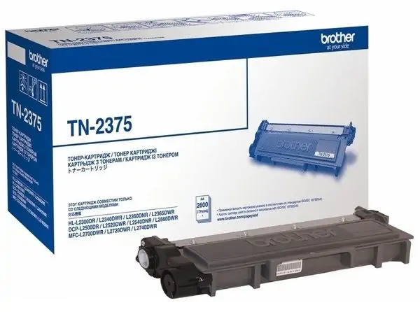 Оригінальний чорний тонер-картридж TN2375 від Brother забезпечує високу роздільну здатність і стабільну якість друку чорно-білих документів від першого до останнього відбитка. Крім того, завдяки підвищеній ємності картридж TN2375 дозволяє надрукувати більше сторінок, не знижуючи їх якості. Основні характеристики: