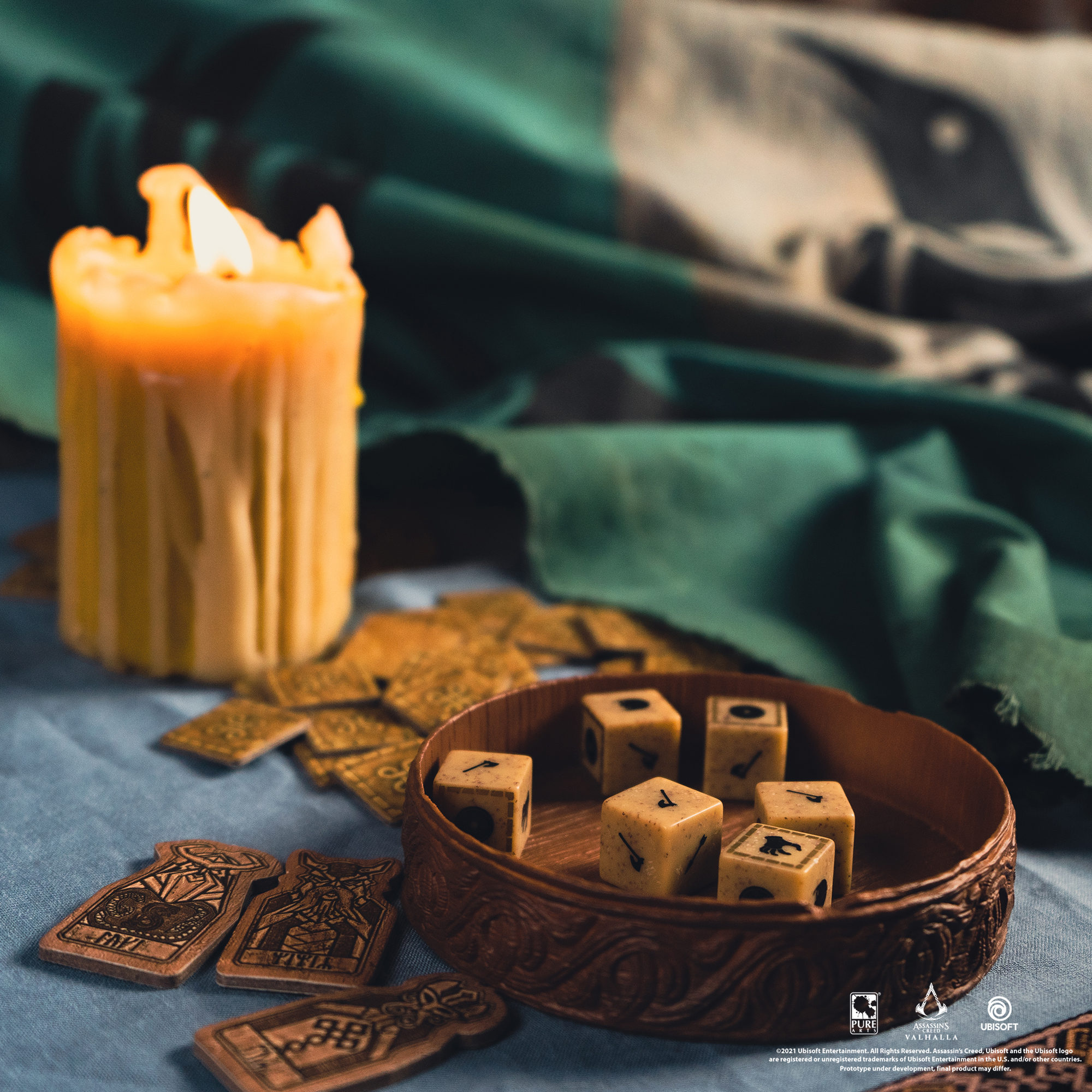 Это настольная игра, где два игрока бросают кубики и используют "Дары Богов". Она была придумана для компьютерной игры Assassin's Creed: Valhalla и стала очень популярной в ней. В Assassin's Creed: Valhalla, в орлог играли древние норманы (викинги) в 870-х годах. Сегодня, благодаря официальной лицензии от Ubisoft, которую получила компания PureArts, Вы можете насладиться орлогом у себя дома.