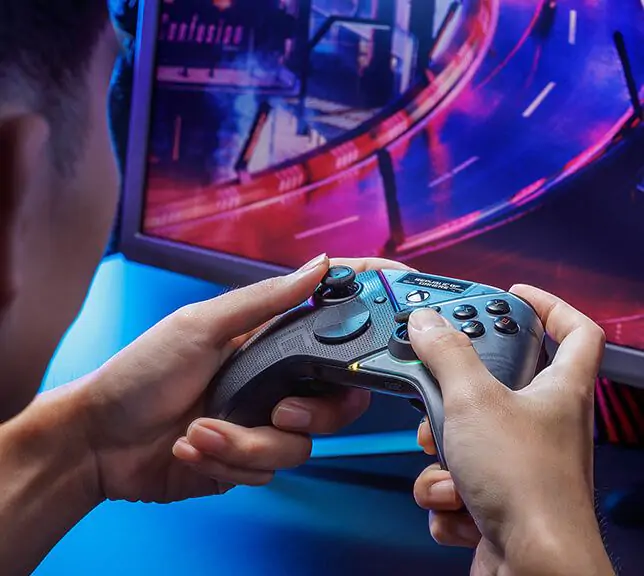 Эргономичный дизайн Raikiri Pro обеспечивает удобный захват независимо от размеров вашей руки, поэтому кнопки на тыльной стороне контроллера всегда окажутся под пальцами. Вам доступно четыре кнопки (по две слева и справа), на которые нанесены поперечные полоски для создания текстурированного покрытия, чтобы вы могли отличить их на ощупь. Вы можете запрограмировать кнопки как альтернативу гарячим клавишам для выполнения сложных команд в игре или использовать их, чтобы настроить чувствительность джойстика не виходя из игры.