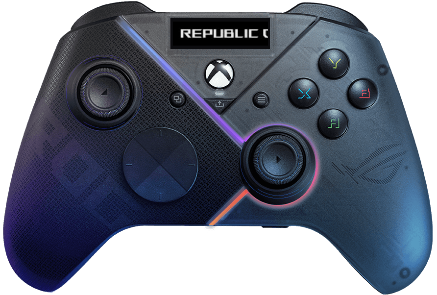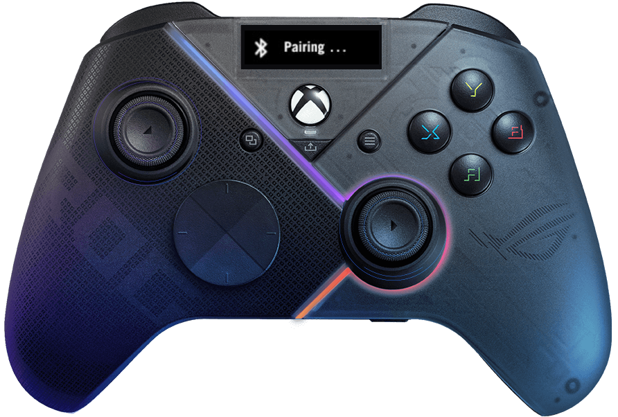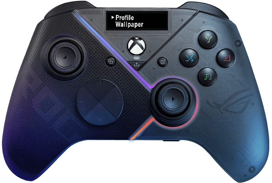 Продемонстрируйте свой стиль, добавив собственное изображение, анимацию или текст на встроенный OLED-дисплей с помощью ПО Armory Crate. Используйте дисплей, чтобы быстро переключать профили или проверить текущий профиль контроллера, уровень заряда или статус микрофона. Две кнопки над OLED-дисплеем можно использовать для переключения между разными профилями контроллера даже во время игры или смены информации, которая отображается на OLED-дисплее.