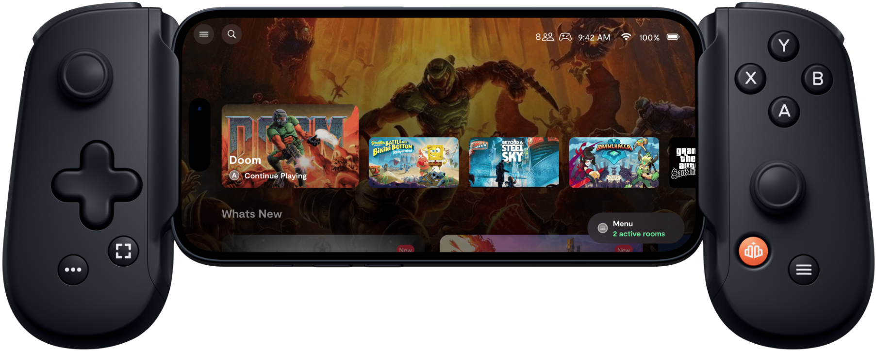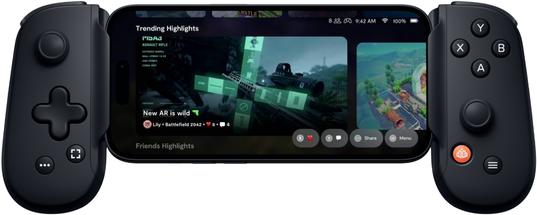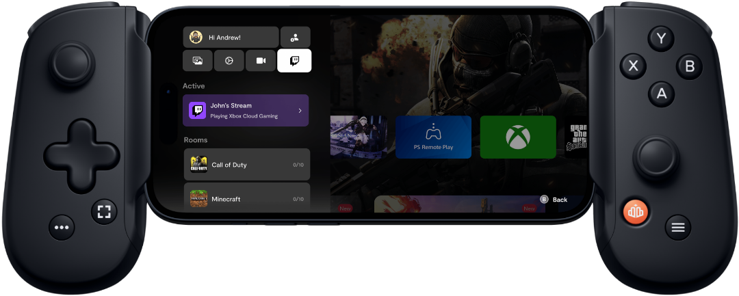 Просто вставьте телефон в геймпад Backbone One Controller, откройте приложение Backbone App, и начните играть в любимые игры не только для телефона а еще и для консолей или ПК где бы вы не были.