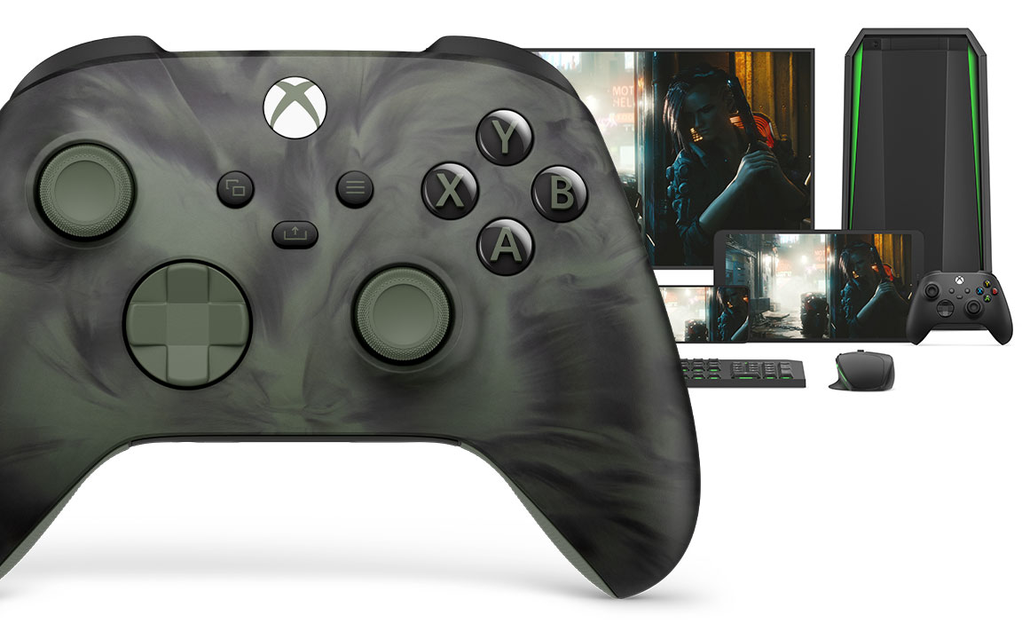 Используется технология Xbox Wireless и Bluetooth® для беспроводной игры на консоли, ПК, мобильных телефонах и планшетах. Подключайте к стереогнезду 3,5 мм любую совместимую гарнитуру.