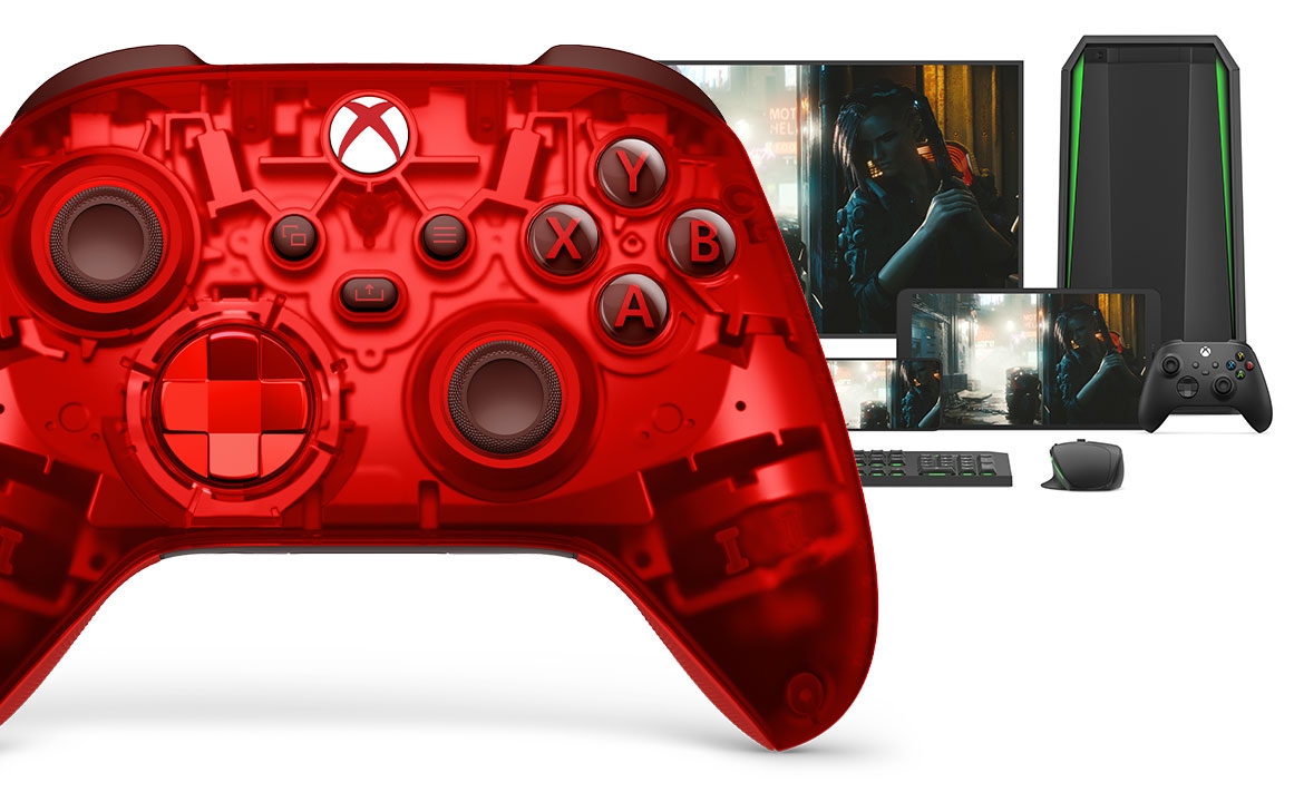 Раскройте тайны с помощью Xbox Wireless Controller – Pulse Cipher Special Edition с прозрачным красным дизайном, серебристым интерьером, металлическими элементами и многим другим. Посмотрите сквозь прозрачную красную верхнюю панель и боковые крышки, чтобы увидеть металлические серебристые внутренние детали, сияющие изнутри.