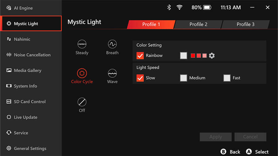 MSI Center M имеет специальный интерфейс, разработанный для портативных устройств с простыми настройками.