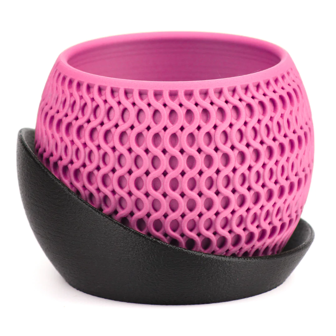 Кашпо изготавливается из экологичного PLA-пластика на 3D-принтере, что гарантирует его прочность, долговечность и безопасность для растений. Материал является биоразлагаемым и не содержит вредных примесей, поэтому отлично подходит для домашнего использования. Благодаря технологии 3D-печати кашпо имеет гладкую поверхность, аккуратные линии и приятную текстуру, что добавляет ему эстетической привлекательности. Оно легкое, удобное в использовании и представлено в разных цветах, что позволяет выбрать вариант, который лучше всего подойдет к вашему интерьеру.