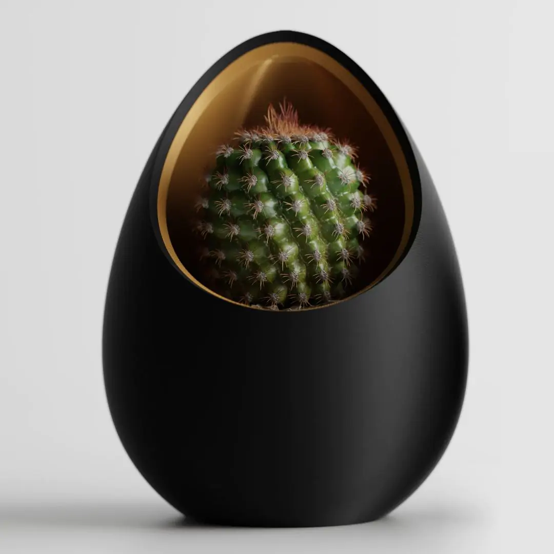 Кашпо имеет форму, напоминающую яйцо, с изысканным и современным видом. Его минималистичный стиль гармонично сочетается с любым интерьером благодаря 16 цветам внутренней части.