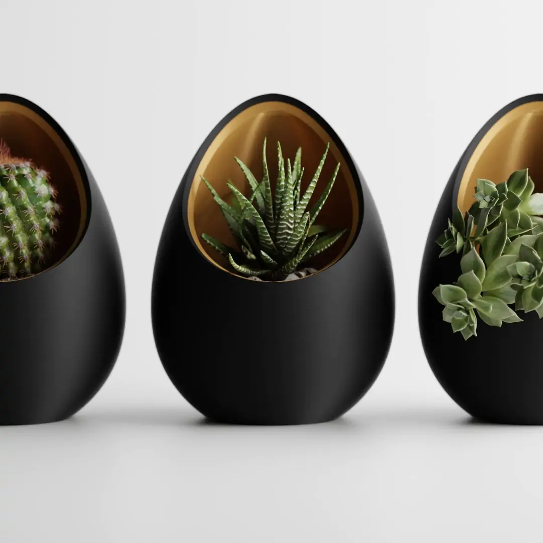 Кашпо изготавливается из экологичного PLA-пластика, что гарантирует его прочность, долговечность и безопасность для растений. Благодаря технологии 3D-печати кашпо имеет гладкую поверхность, аккуратные линии и приятную текстуру, что придаёт ему эстетическую привлекательность.