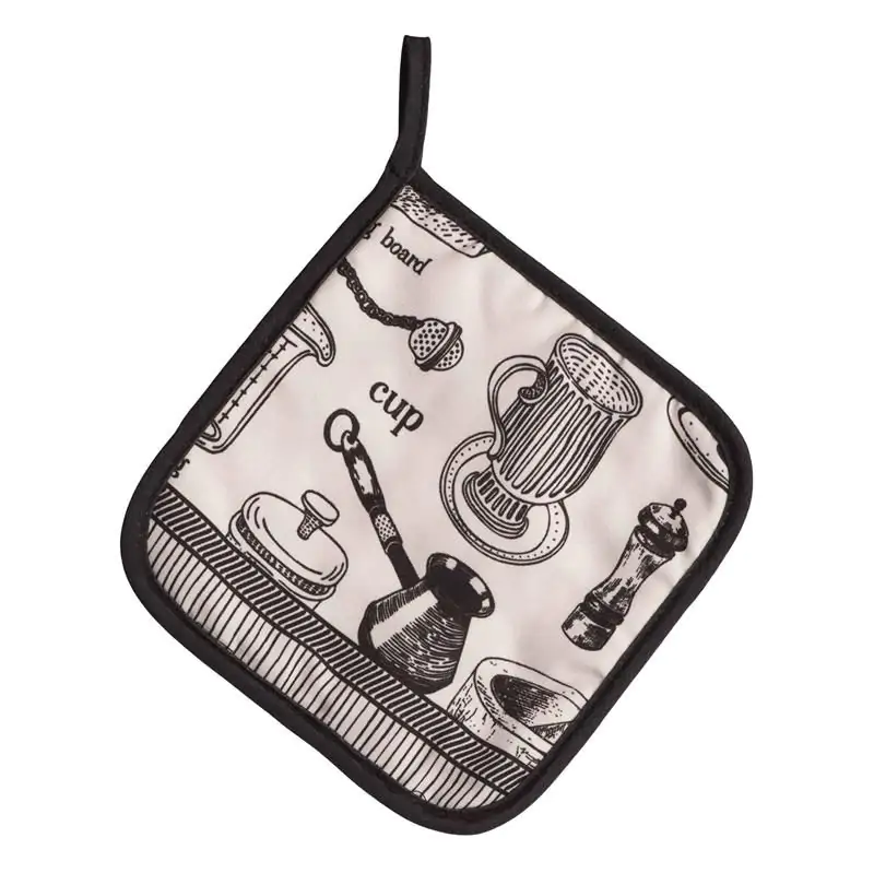 <p>Тип: прихватка.<br /> Розмір: 20х20 см.<br /> Дизайн: Kitchen.<br /> Склад тканини: 90% поліестер, 10% бавовна.<br /> Гарантія: 1 місяць у разі виробничого дефекту.<br /> Країна виробництва: Китай.<br /> Рекомендації по догляду:<br /> - прати в пральній машині при 30 °C на делікатному режимі;<br /> - машинне сушіння при низькій температурі;<br /> - не відбілювати;<br /> - хімічне чищення будь-яким розчинником, крім трихлоретилену;<br /> - прасувати при температурі до 110 °C.</p>