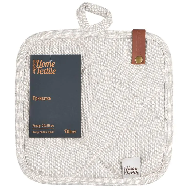 Прихватка Ardesto Oliver, 20х20см, 100% бавовна, нап-ч: ватин, сірий світлий