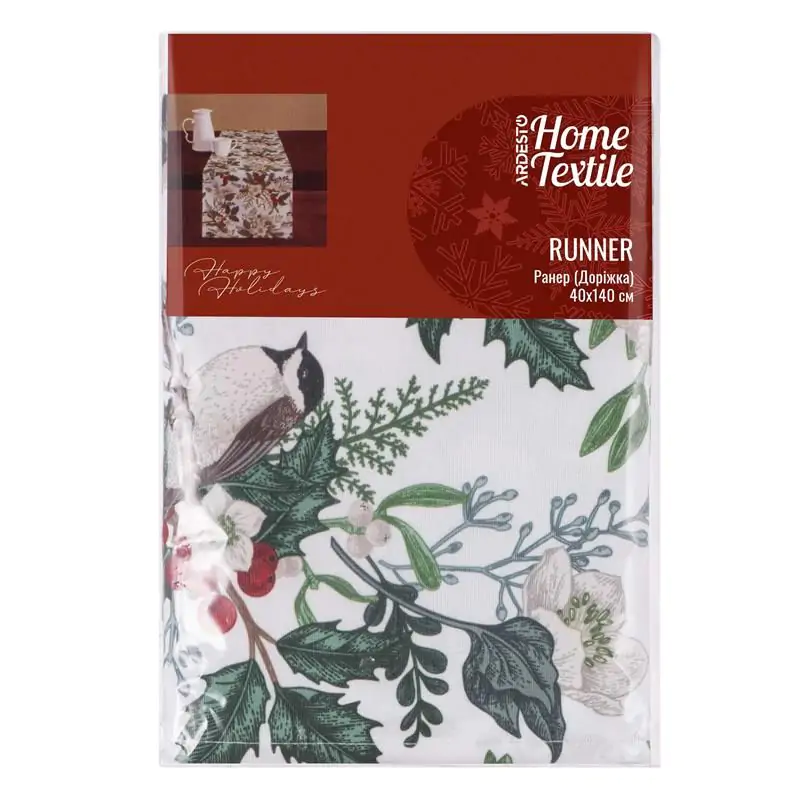 Ранер Ardesto Christmas Happy Holidays, 40х140см, 90% поліестер, 10% бавовна, зелений гостролист