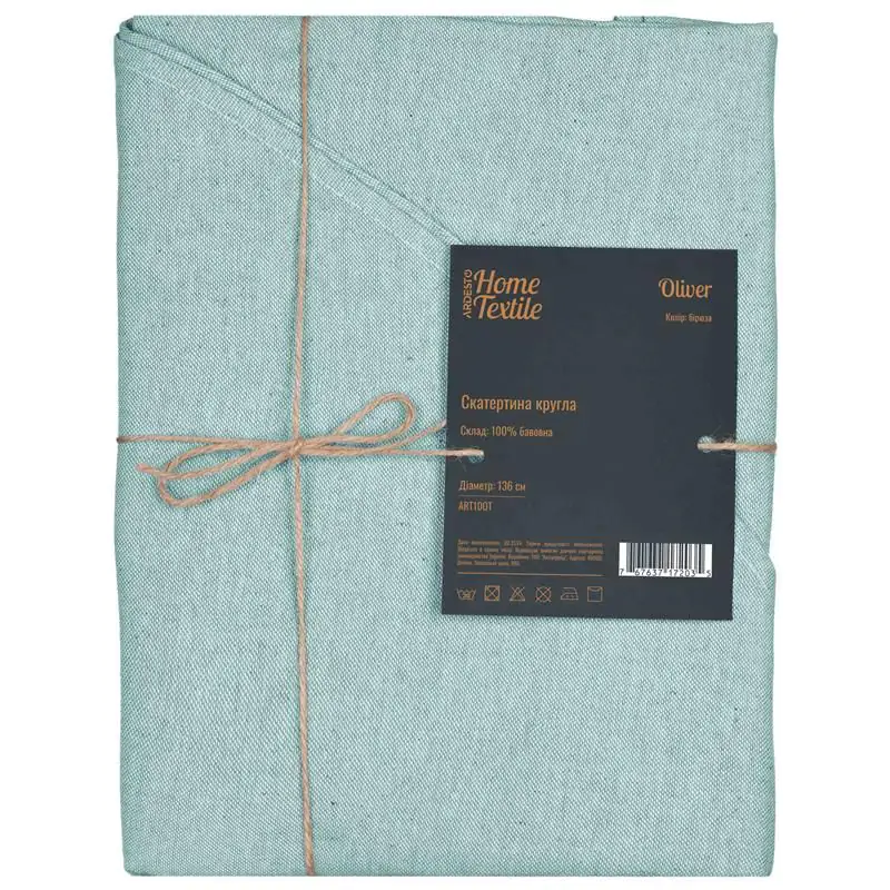 Скатертина Ardesto Oliver, 136см, 100% бавовна, бірюза
