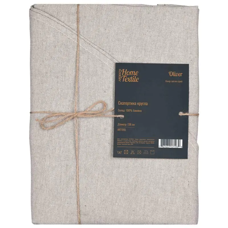 Скатертина Ardesto Oliver, 136см, 100% бавовна, сірий світлий