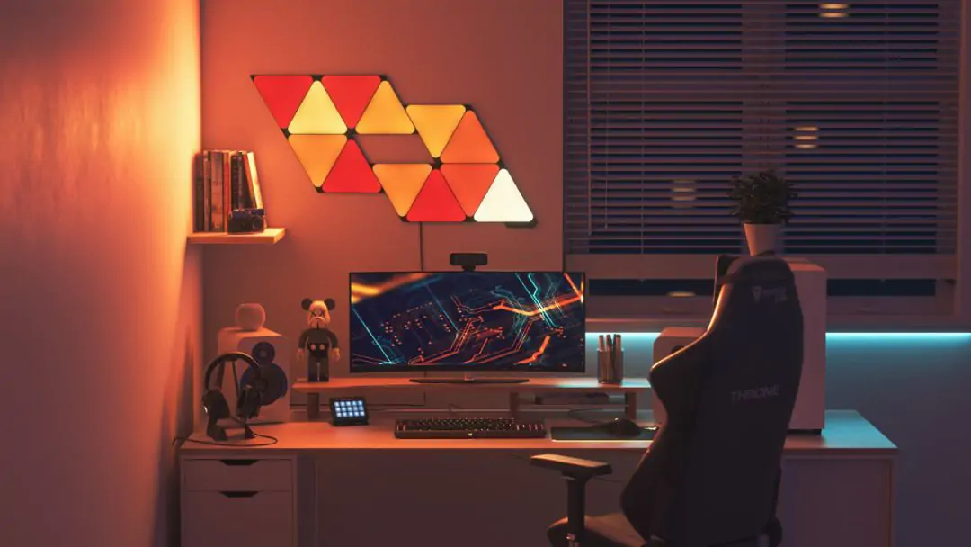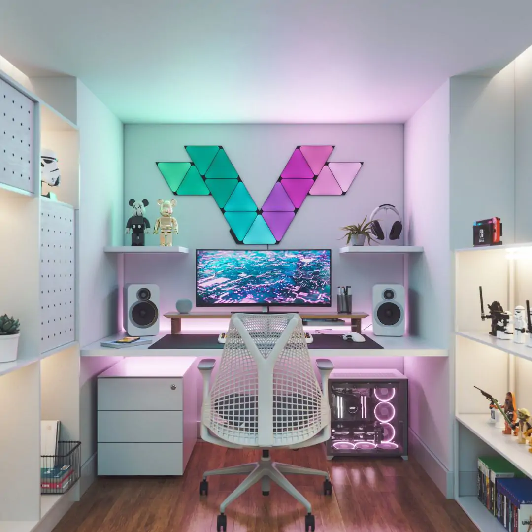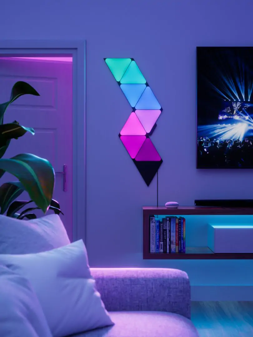 Эта умная система освещения, меняющая цвет, — именно то, чего не хватало вашей системе. Добавьте панели Shapes на стену за или рядом с вашей игровой системой, чтобы получить эффект полного погружения с помощью функции Screen Mirror или собственных настроенных RGB-сцен.