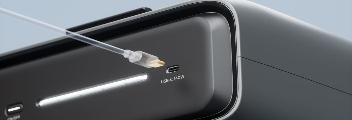 Добавляя дополнительную батарею к RIVER 3 Plus вы также получаете еще один разъем USB-C мощностью 140 Вт для зарядки как ваших устройств так и самой батареи.