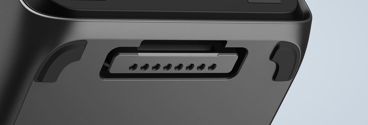 Используйте технологию Pogo Pin, для подключения дополнительной батареи с помощью зажимов, а не проводов или болтов.