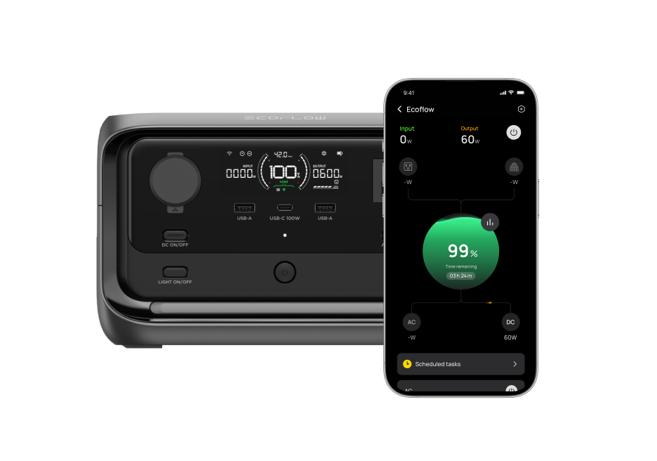 Подключитесь к станции EcoFlow RIVER 3 с помощью Bluetooth или Wi-Fi и дистанционно управляйте ею, когда вы не дома.