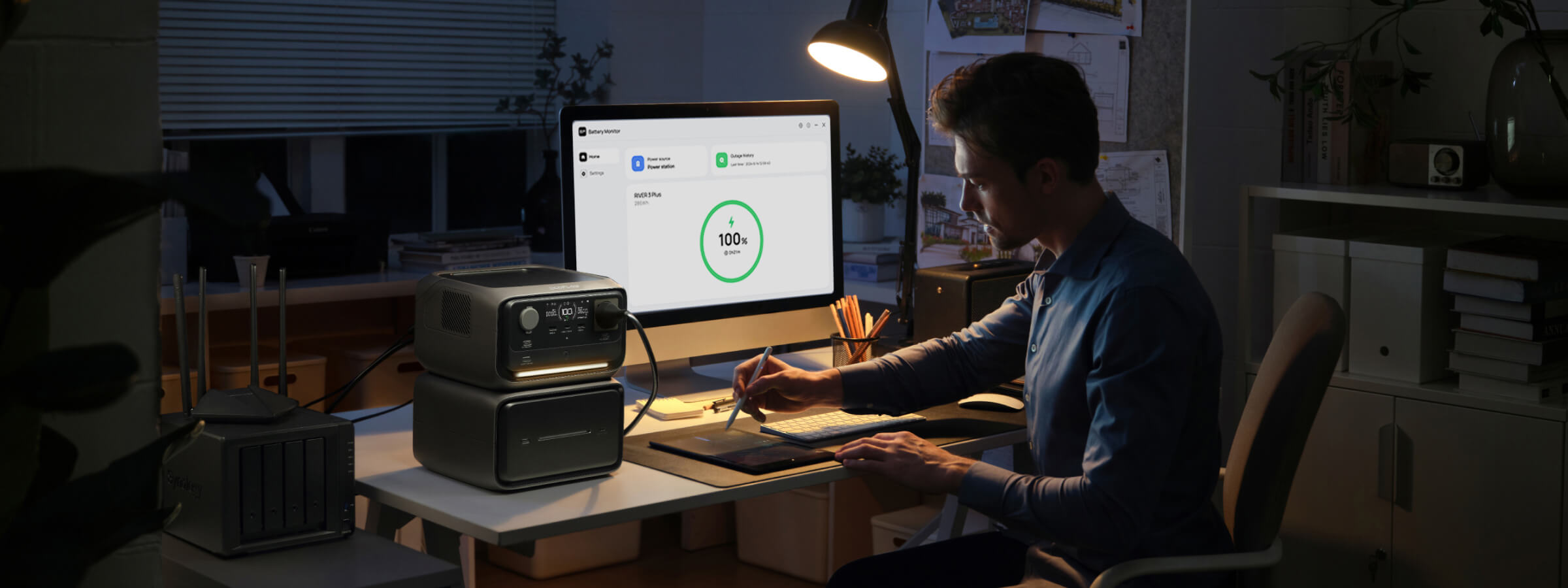 Будьте наготове во время отключений электроэнергии с RIVER 3 Plus, оснащенным светодиодом и оповещениями в приложении. Он совместим с ПК и NAS и имеет программное обеспечение EcoFlow, которое оповестит вас про низкий заряд батареи, чтобы обеспечить правильное завершение работы.