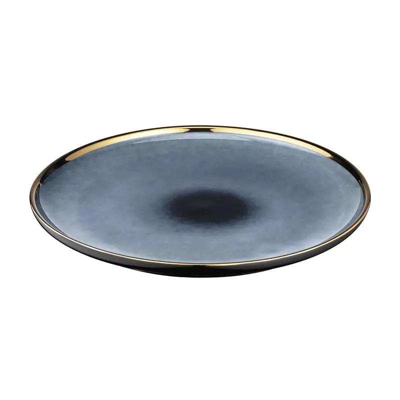 <p>Серія: Andria.<br /> Тип: тарілка обідня.<br /> Матеріал: кераміка.<br /> Діаметр: 25.7см.<br /> Основний колір: синьо-сірий.<br /> Використання в посудомийній машині: не рекомендується (можлива зміна кольору обідка).<br /> Використання в мікрохвильовій печі: не рекомендується (можлива зміна кольору обідка).<br /> Гарантія: 1 місяць у разі виробничого дефекту.<br /> Країна виробництва: Китай.</p>