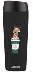 Термокухоль Ardesto Coffee Time Christmas Reindeer 450мл, нержавіюча сталь, чорний