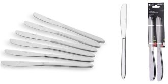 Серія: Ether Тип: ніж столовий Кількість предметів: 6 шт. Матеріал: нержавіюча сталь Полірування: дзеркальне Вага: 70 г Товщина: 5 мм Розмір: 225 мм Упаковка: блістер Використання в посудомийній машині: так Країна виробництва: Китай Гарантія: 1 місяць у разі виробничого дефекту