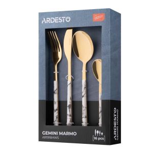 Набір столових приборів Ardesto Gemini Marmo, 16 приборів, нержавіюча сталь, пластик, золотисто-білий