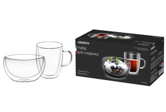 Набір для сніданку чашка і піала з подвійними стінками Ardesto, 270мл, 500мл, боросилікатне скло, прозорий