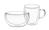 Матеріал: боросилікатне скло<br/> Чаша: об'єм: 500 мл, верхній діаметр: 14,5 см, висота: 6,5 см Стакан: об'єм: 270 мл, верхній діаметр: 8 см, висота: 10 см Колір: Прозорий Термостійкість: -20...+150 °C Використання в посудомийній машині: не рекомендується. Гарантія: 1 місяць у разі виробничого дефекту. Термін придатності: необмежений, не вимагає особливих умов зберігання. Країна виробництва: Китай.