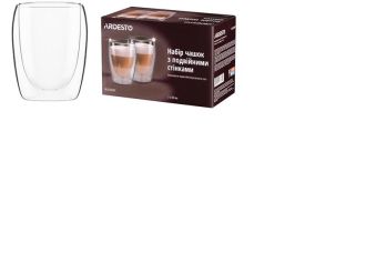Набір чашок з подвійними стінками Ardesto, 300мл, 2шт, боросилікатне скло, прозорий