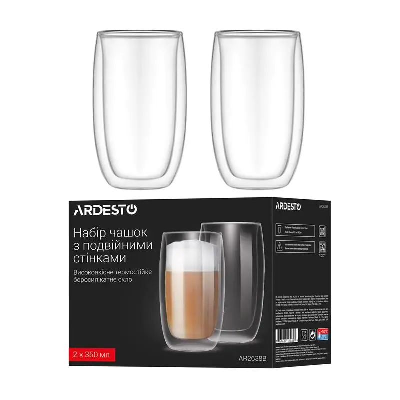 Набір чашок з подвійними стінками Ardesto, 380мл, 2шт, боросилікатне скло, прозорий