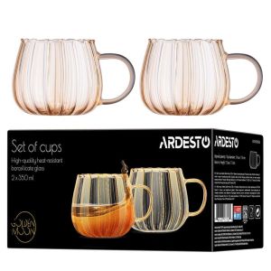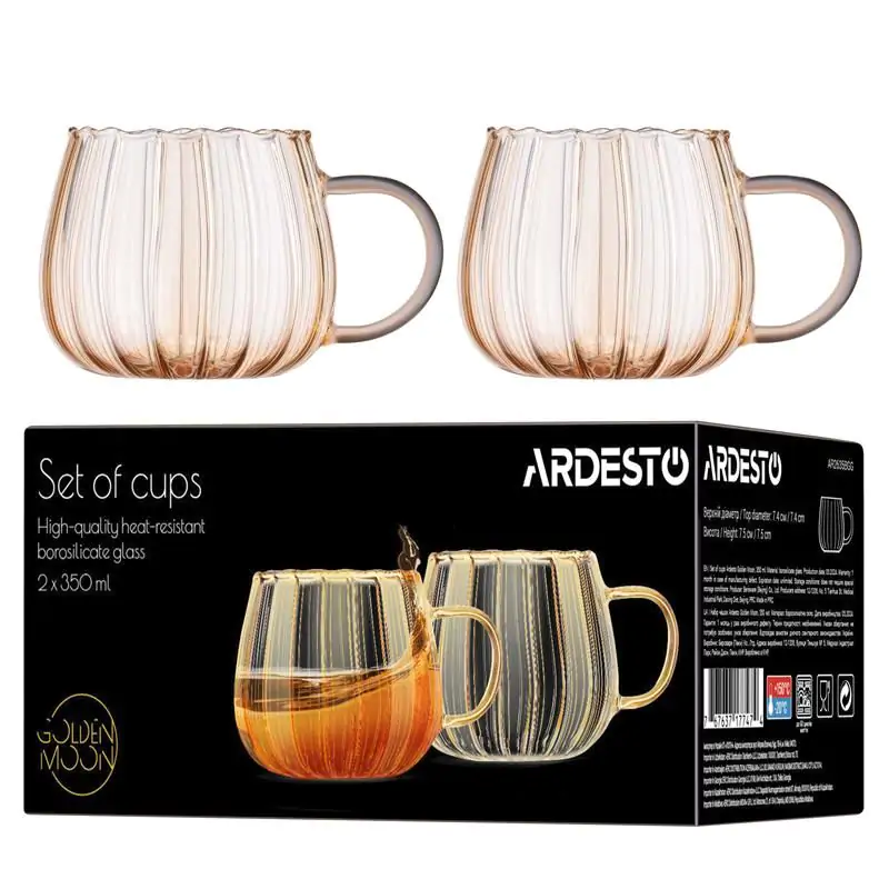 Набір чашок з ручками Ardesto Golden Moon 350мл, 2шт, боросилікатне скло, прозорий