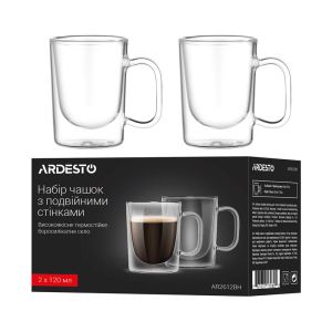 Набір чашок з ручками і подвійними стінками Ardesto, 120мл, 2шт, боросилікатне скло, прозорий