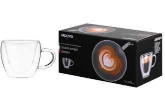 Набір чашок з ручками з подвійними стінками Ardesto, 300мл, 9.5см, 2шт, боросилікатне скло, прозорий