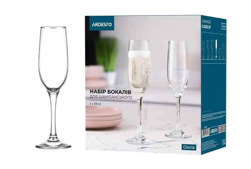 Набір келихів для шампанського Ardesto Gloria, 215мл, 6шт, скло, прозорий