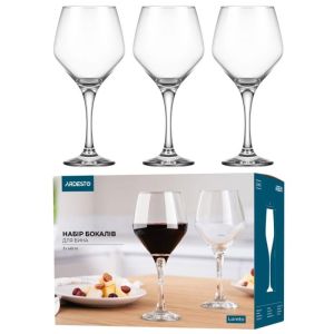 Набір келихів для вина Ardesto Loreto 440мл, 3шт, скло, прозорий